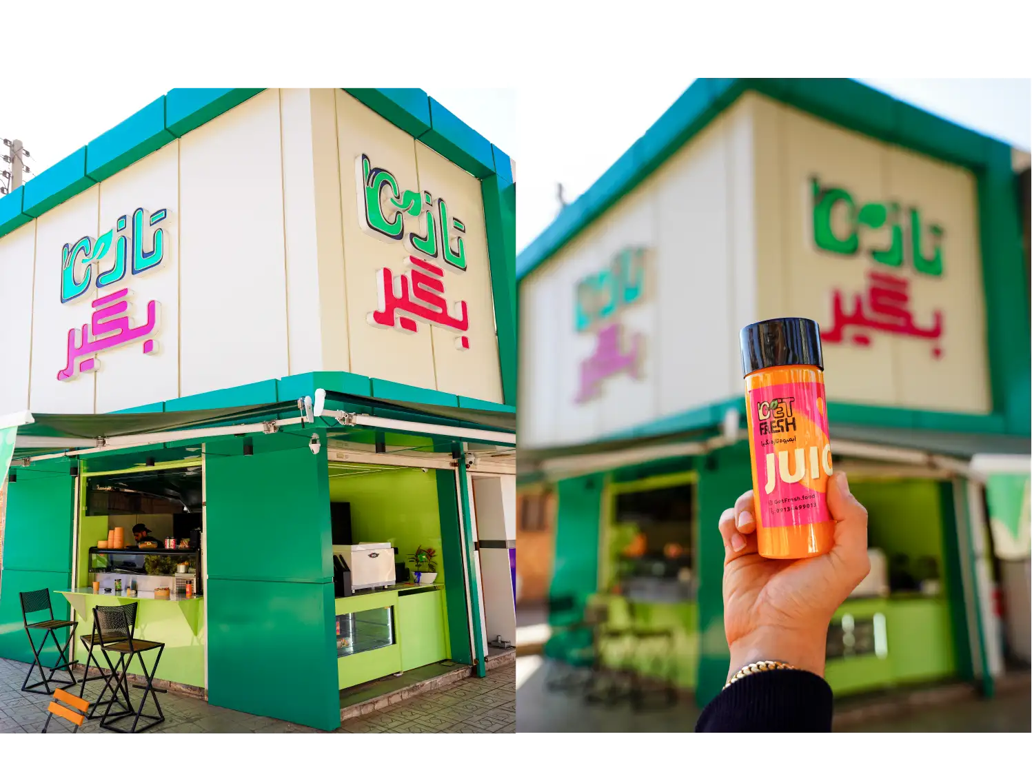 هویت بصری آنلاین و آفلاین، از جمله لوگو، مسکات، طراحی محیطی، لیبل و بسته‌بندی‌ها را، با رنگ‌های پر انرژی طراحی کردیم تا برند در ذهن بماند. با مدیریت شبکه اجتماعی اینستاگرام و کمپین‌های متفاوت در مراکز محلی، بازدید و وفاداری مشتریان را افزایش دادیم.