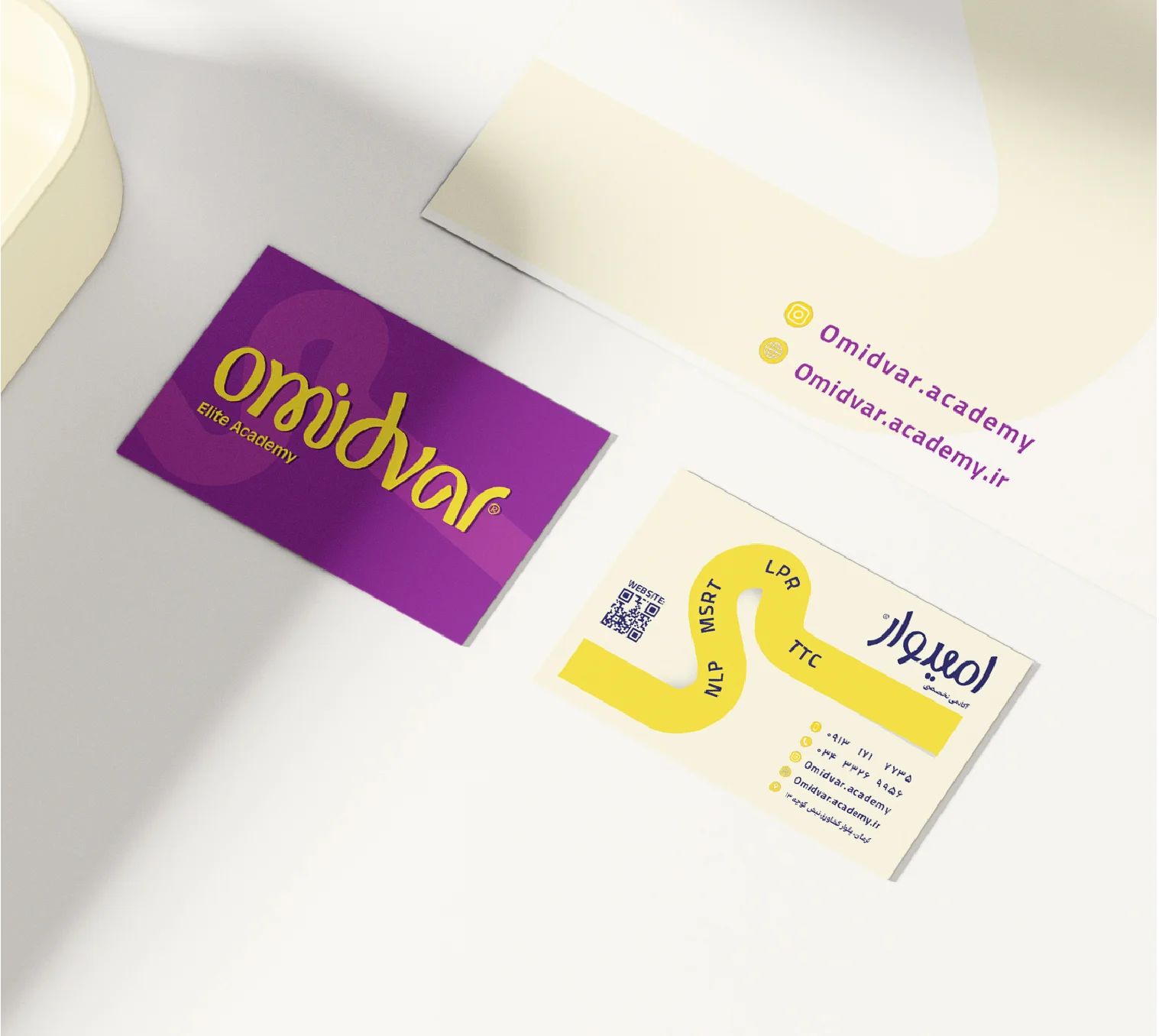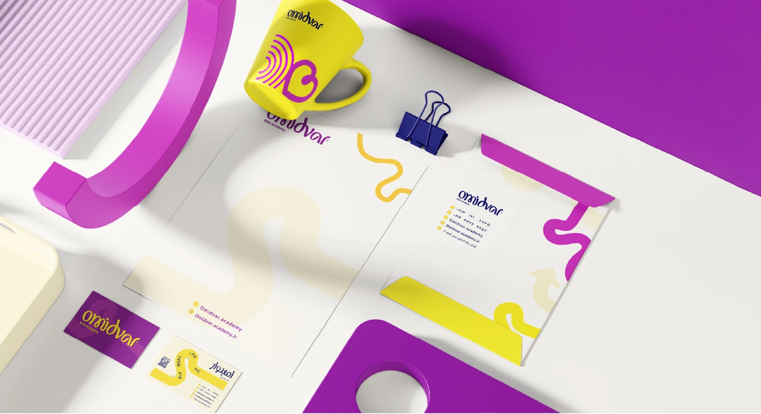 انسجام هویت بصری آکادمی امیدوار در تمام نقاط تماس فضای آفلاین، یکپارچگی را به وجود آورده که آکادمی را به مقصدی مطمئن برای یادگیری زبان در کرمان بدل کرده و زبانآموزان را به ثبتنام دعوت میکند.